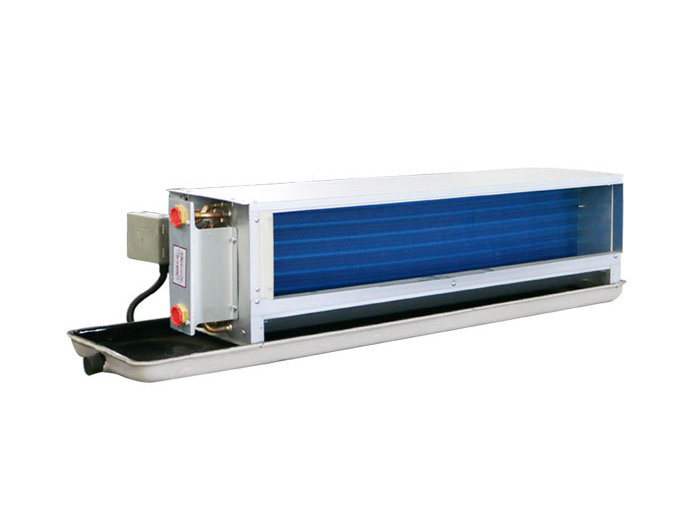臥式明裝風(fēng)機(jī)盤管機(jī)組主要由風(fēng)機(jī)、換熱器(盤管)、殼體、托盤和控制器構(gòu)成。